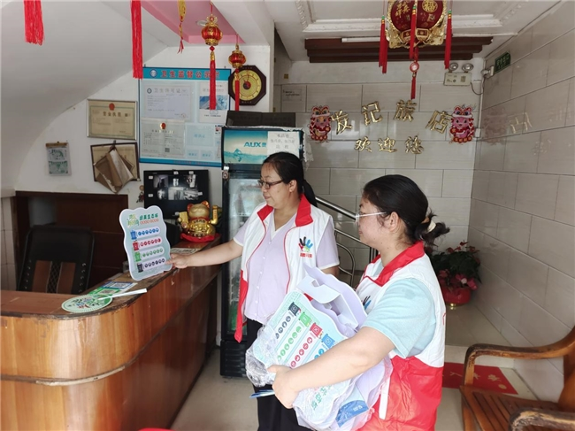 与此同时,志愿者还走进沿街商户,向经营者发放垃圾分类宣传册子和垃圾分类主题立牌,对于不同行业商户所产生的垃圾特点,志愿者还在现场进行了有针对性的分类指导。例如新城广场附近的吖章咖啡、西宁面店等餐饮业商户,志愿者详细为他们讲解了如何有效分离食物残渣和可回收物品;对于倍宁药店、美宜佳便利店等零售业商户,则重点介绍了如何正确分类包装材料和废旧商品。这些细致入微的指导,不仅帮助商户们更好地理解和落实垃圾分类工作,也让他们深刻了解垃圾分类的重要性和紧迫性。